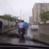 Owing to different accidents during the showers two people were killed while a man electrocuted in Nishat Colony.