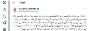 Hafiz Naeem Ur Rehman said that after intermediate science now 80 percent students belonging to intermediate arts are also being declared failed.