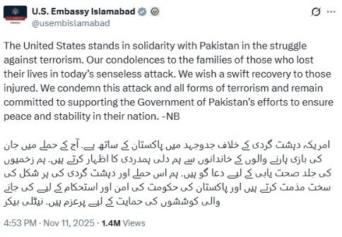 The United States embassy in Islamabad reiterated its support for Pakistan’s counterterrorism efforts while conveying deep sympathy to the bereaved families. Similarly, the Chinese Embassy condemned the attack, expressed heartfelt condolences, and wished a quick recovery for the injured.