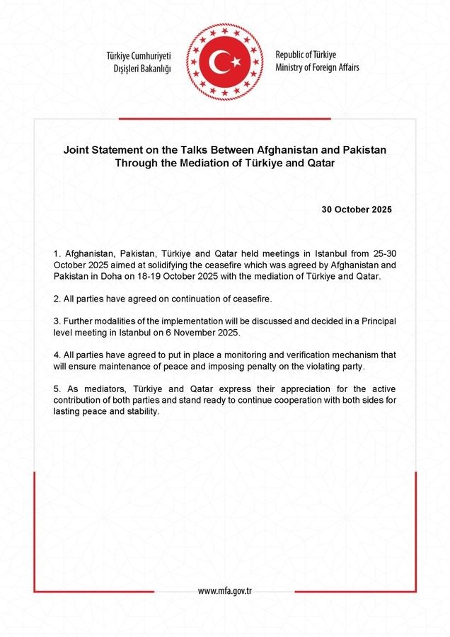 ISLAMABAD: Following a week-long round of discussions in Istanbul, Pakistan and the Afghan Taliban have decided to uphold the ceasefire, as announced by the Turkish Foreign Ministry in a joint statement issued on Thursday night.